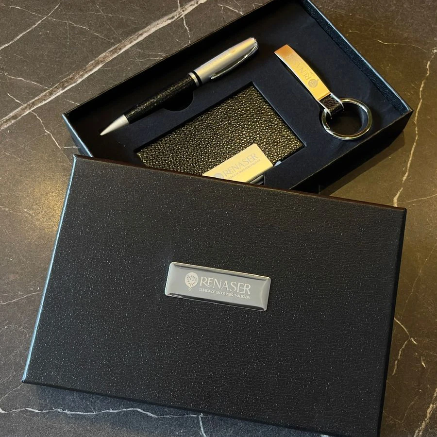 - Kits temáticos com produtos relacionados à identidade da empresa;
