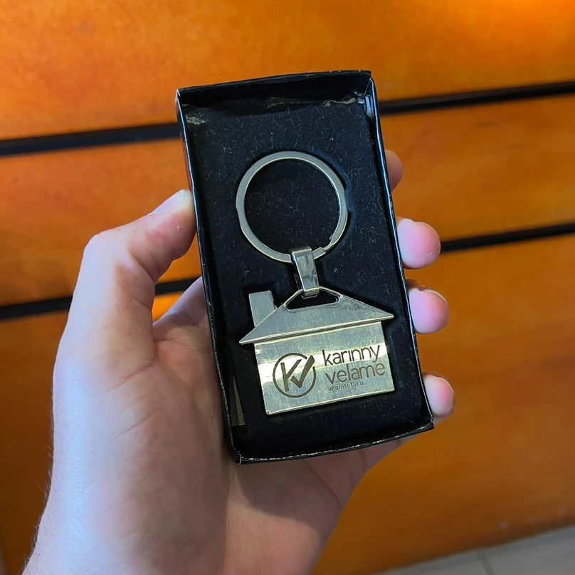 Além disso, a presença constante do chaveiro no dia a dia do usuário reforça a lembrança da marca, aumentando a visibilidade e a memorabilidade.