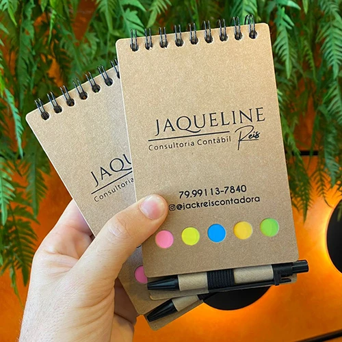 A empresa atua com variedade de produtos, desde copos e cadernos até ecobags e kits corporativos, promovendo visibilidade e destaque.