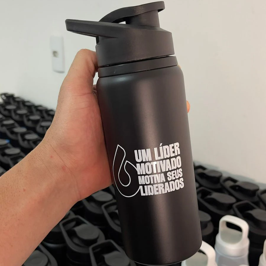 Além disso, a garrafa squeeze personalizada transmite cuidado e profissionalismo, reforçando a fidelização e a presença da marca.